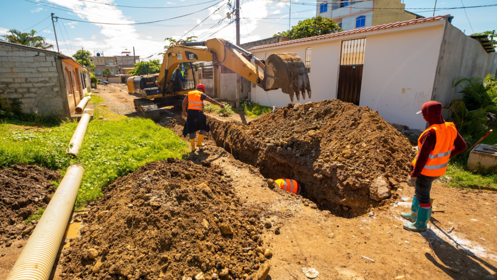 Moradores de la ciudadela Sauces Sector 2 de la ciudad de Machala, provincia de El Oro, están siendo beneficiados con la colocación de tuberías para la evacuación de agua lluvia. Las labores están siendo realizadas por maquinaria y obreros de la Municipalidad de Machala.