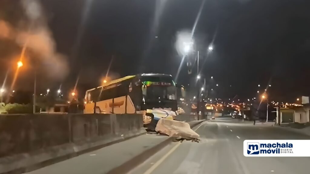 Un bus de la cooperativa Villamil se accidentó tras un intento de robo, delincuentes aprovecharon que aún estaba oscuro para cometer el delito; este suceso ocurrió la madrugada de este martes 28 de noviembre en la vía Perimetral, norte de Guayaquil.