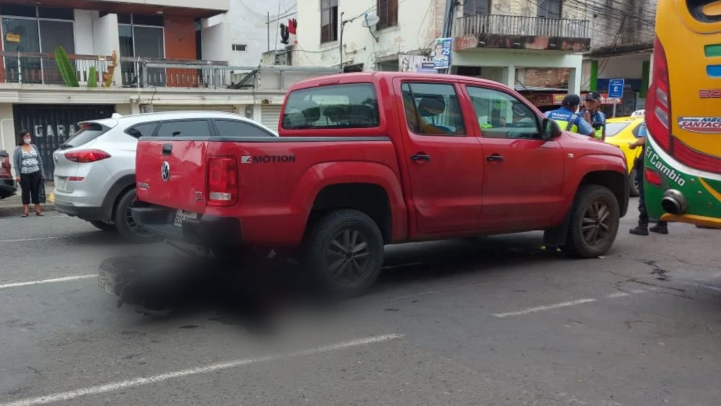 Según testigos del hecho, el conductor de la camioneta arrastró la motocicleta desde la intersección de la calle Pichincha y Junín hasta la Pichincha y Nueve de Mayo de Machala.