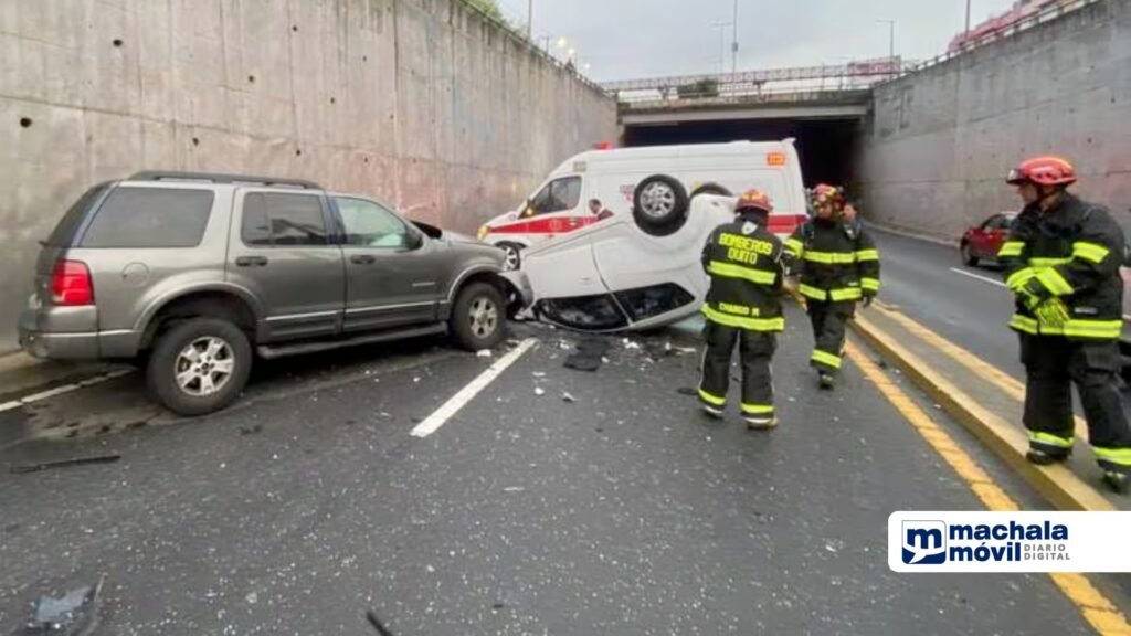 Dos personas resultaron heridas, las cuales fueron tratadas por miembros del Cuerpo de Bomberos Quito (CBQ) y estabilizadas. El siniestro se dio en la parte baja de un paso a desnivel de la zona, por lo que el tránsito quedó suspendido en sentido norte-sur.