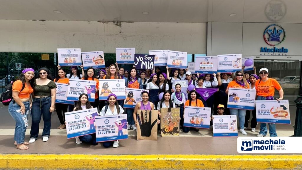 Una delegación de servidoras, docentes y estudiantes de la Universidad Técnica de Machala (UTMACH) participó este sábado 25 de noviembre en la marcha por el Día de la No Violencia contra la Mujer. La marcha, que partió desde el sector de El Tropezón y culminó en el parque central de Machala, contó con la participación de cientos de personas de diferentes organizaciones sociales y colectivos feministas.