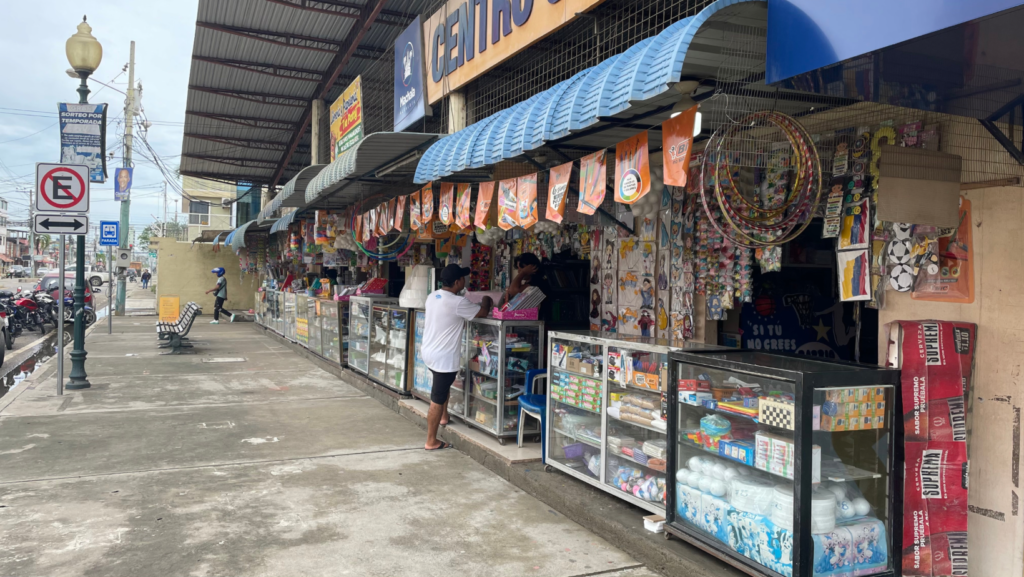 “Las ventas están bajas prácticamente, solo vemos carros pasar pero no hay clientes” lamentó Walter Lojano, comerciante, quien considera que la baja venta de útiles escolares se debe por la crisis económica que atraviesa el país.