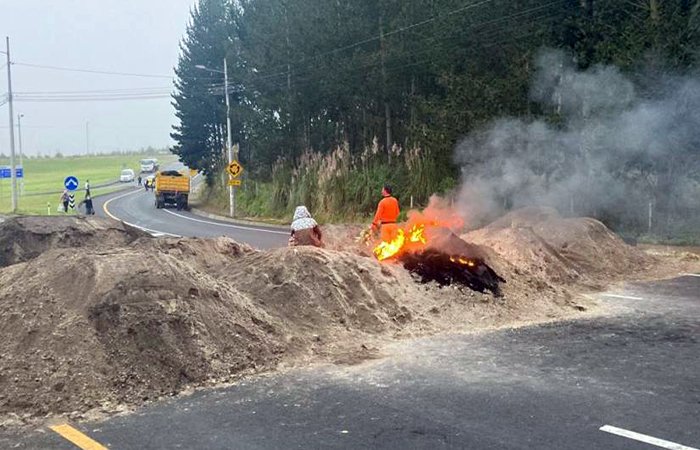 Manifestantes cerraron un tramo de la vía Tabacundo-Cajas. La acción se suma al rechazo por la eliminación del subsidio al diésel anunciada por el Gobierno Nacional.