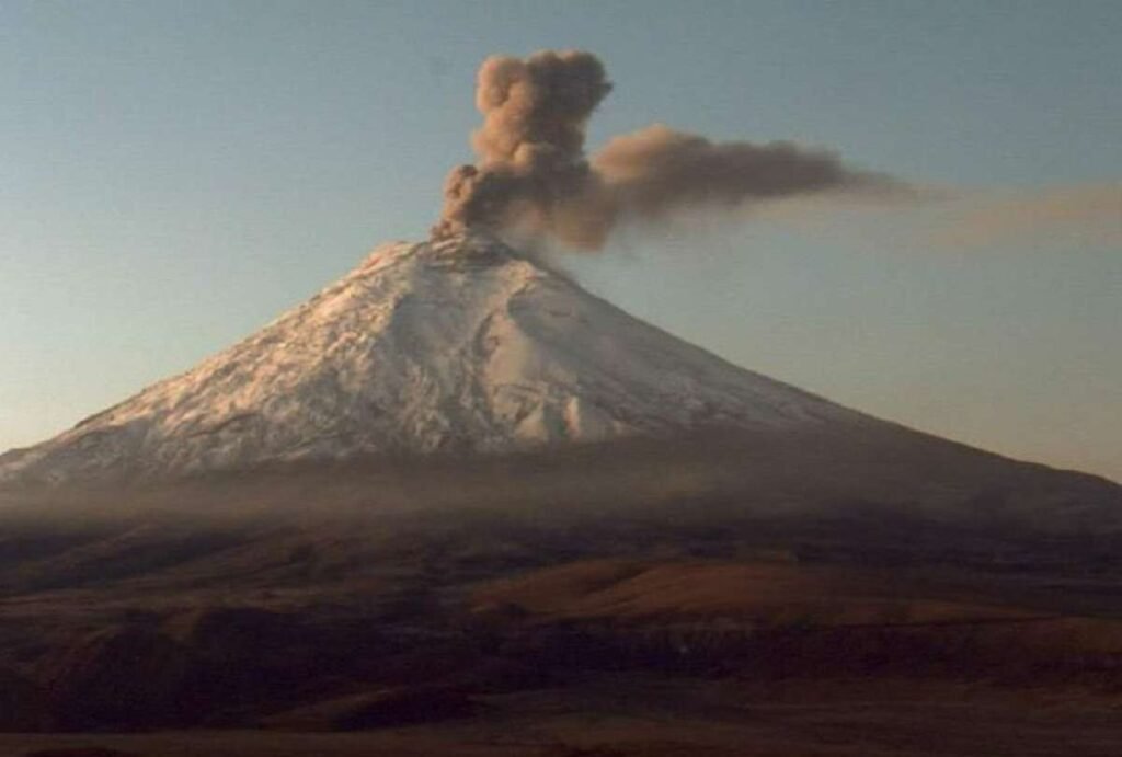 El Instituto Geofísico del Ecuador reportó la emisión de una columna de vapor y “poca cantidad de ceniza” desde el volcán Cotopaxi.