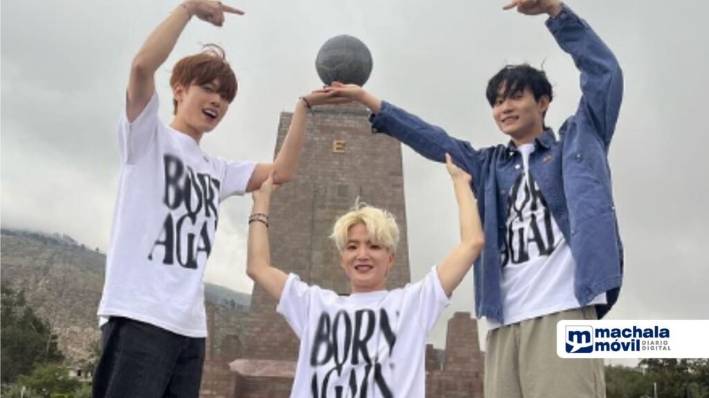 En un video compartido en sus redes sociales mostraron su paso por la Mitad del Mundo. En el clip de unos segundos se puede ver a los tres integrantes haciendo un baile con una joven que llevaba puesto un traje típico del floclor serrano.